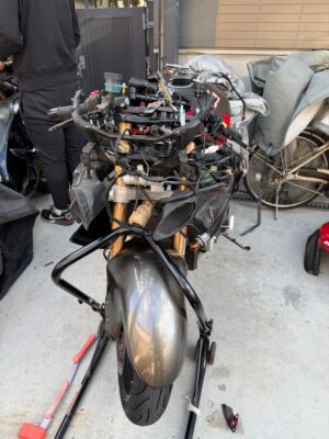 ライトの取り外しは昔アッパーカウルを外した事があったので簡単に出来ると思い込んでいたけどアチコチのネジを外したり、過去の記憶から抜け落ちてるところがあって。