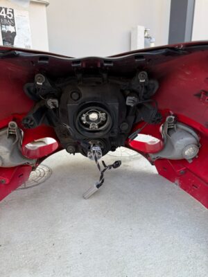 とバラしたところでアッパーカウルからヘッドライト部を取り外す。