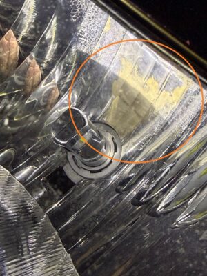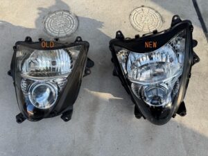 最初に驚いたのは自分の隼のライト。リフレクター部の表面の剥げだった。