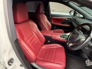シートカラーはFスポーツ限定オプションカラーのワインレッド。
