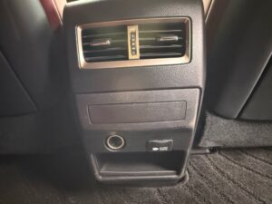 リアのセンターにはエアコンの送風口。そこにはAC100Vがあるのも長距離ドライブに便利ですね。